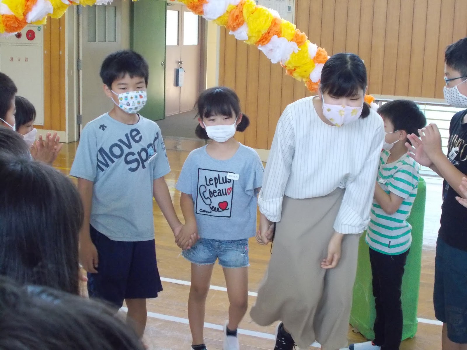 お昼の放送では1年生からかわいい お礼のメッセージがありました。 |
